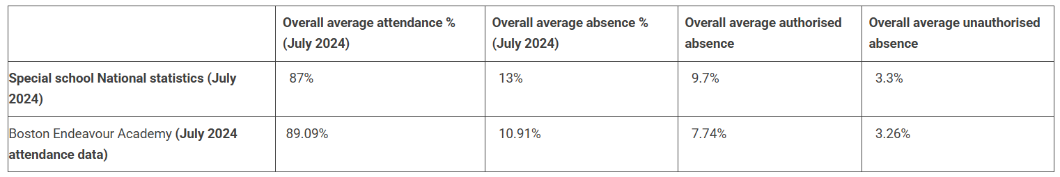 Boston Endeavour Academy has an aspirational target to be higher than the national average for SEND whole school attendance. We know how important it is to work with parents and carers as well as other professionals to support pupils to attend school every day.