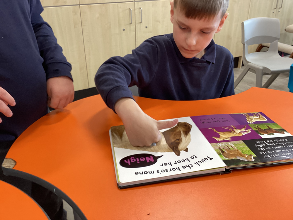 We encourage pupils to engage with reading through sensory stories, sharing songs and rhymes and through motivating activities designed to promote joint and shared attention. Using sensory elements and immersive experiences to bring stories to life enables all pupils to access books and develop their love of reading through shared experiences.